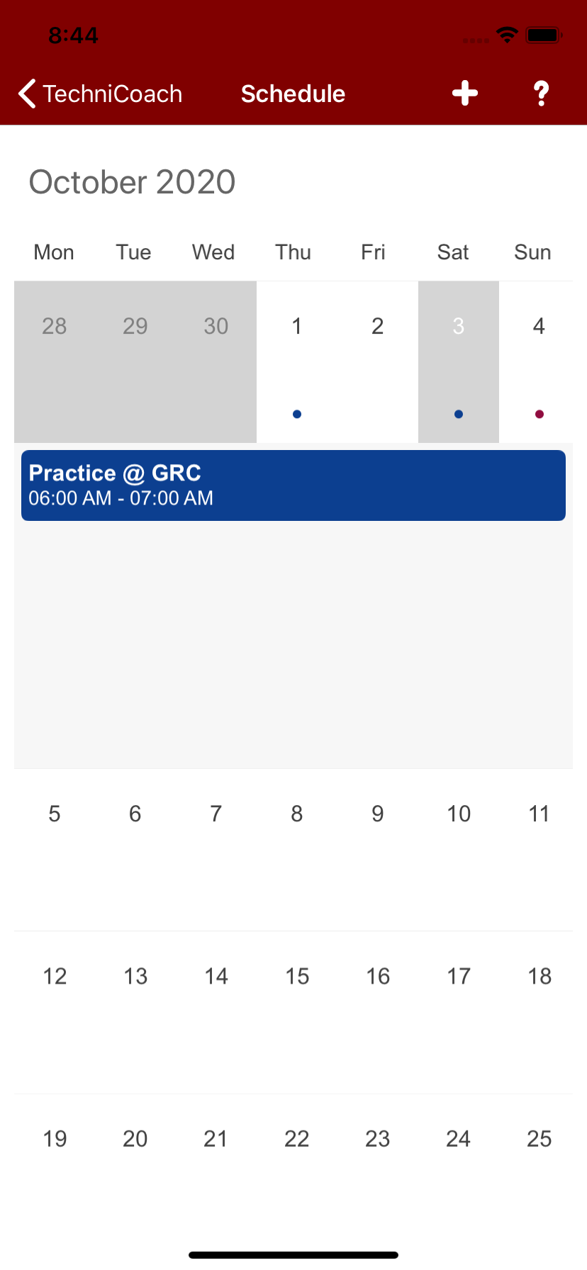 You can select Practice, Game or Meeting event type. Each is displayed in a different colour in the schedule.