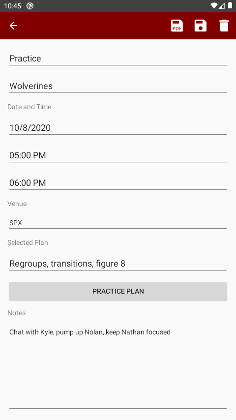This is mean't entirely to help a coach keep track of what they plan per practice, game-plans followed and forward planning of practices and games through the season.